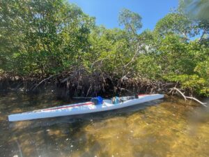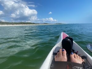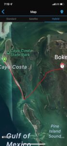 I decided to push myself on the new surfski. Cayo Costa is my favorite island in the area with amazing beaches and crystal clear water, unlike our river water. While it’s way too far to paddle from the property, I found a launch site on Pine Island that made it about 20 miles round trip. The kids went with me and launched their boat from the same marina I launched the kayak from. I could cut across the shallows, while they had to stick to channels and we met up on the island.