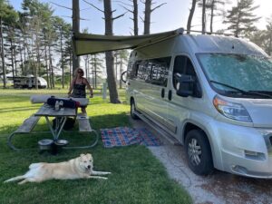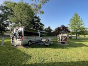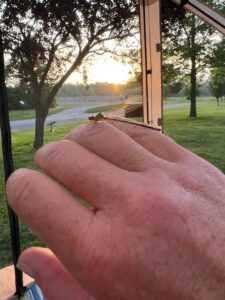 The park was nice enough. Our spot was across from a berm around the lake that made for a nice walk. Apparently I’ve forgotten what the bugs of my childhood were like because midwestern bugs were not being nice to us. And of course, it was still hot.