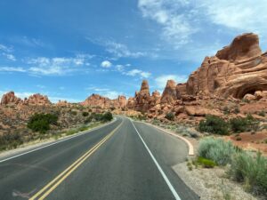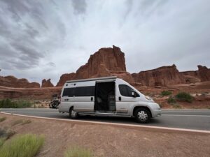 I managed to reserve a 10am timed entry slot to Arches National Park. We parked and hiked several times, leaving Riley in the van with the AC on, since dogs aren’t allowed on most trails (but we brought her with us where they were allowed).