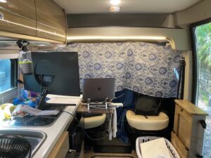 I returned to work — from the van. I did not return to California. I got a temporary remote work arrangement through January, 2022. So I set about getting the van set up for remote work and dug back in.