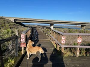 We were getting pretty close to home, but found a California State Park on a beach. But first, we stopped for dinner in Pismo Beach along the way (quite relieved to find easy parking). My favorite place to be! Except dogs weren’t allowed. This park did not have hookups of any kind (electric or water), but since it’s almost never hot along the coast, we did fine.