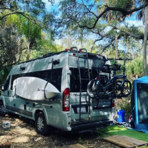 We also switched from a hitch mounted bike rack to one that mounts on the rear passenger door. Supposedly it could handle the combined weight of our two small eBikes.