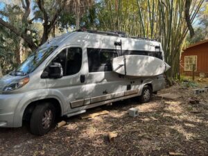 KT finally joined me in Florida and our daughter and her boyfriend also came down for an extended visit. Until this point, I had been driving to a Pilot gas station in Ft. Myers (about 20 miles south) every 3-4 days to dump tanks. It was kind of a pain and occasionally the dump was out of service due to someone abusing it, and there weren’t a lot of alternate options. I noticed there was a septic clean out in front of the house, so I ordered a honey wagon and tried dumping into it, then wheeling over to the pipe, dump, repeat. It took several trips and was kind of gross. Also, the wagon weighed quite a bit when full and I had to elevate it to get the spout higher than the pipe.